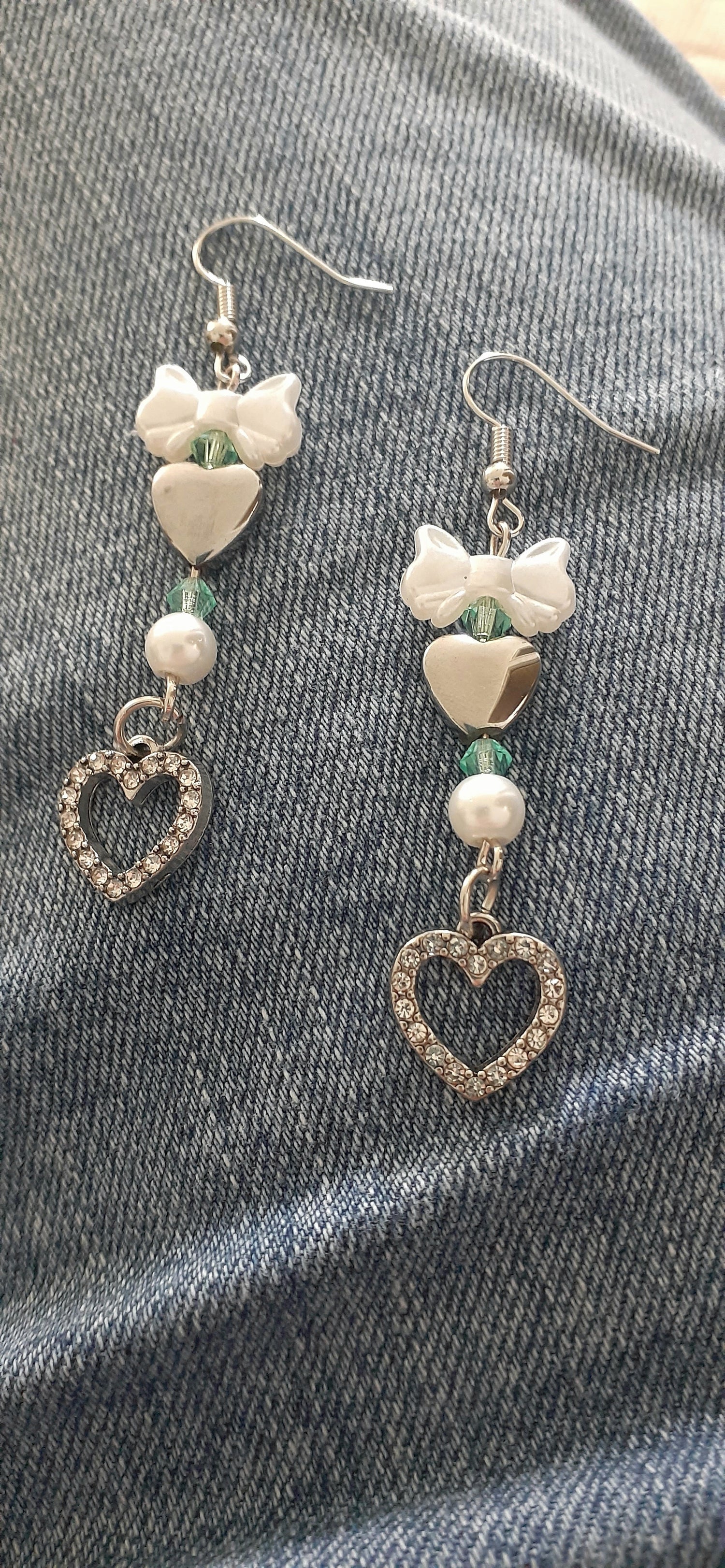 Rose Heart Charm beaded drop earrings, Approx. 3" L